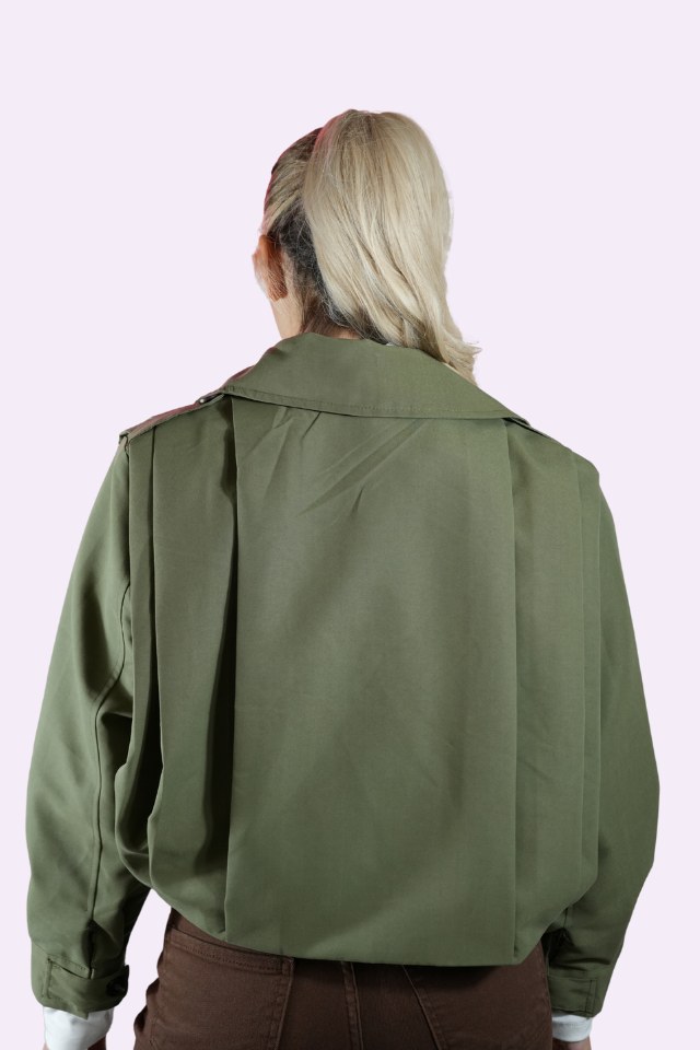 Crop Kesim Düşük Omuzlu Haki Ceket
