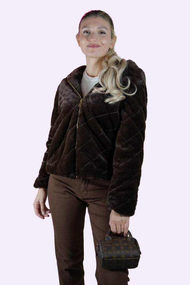 Kış stilinizi lüks bir dokunuşla tamamlayın! Ultra yumuşak ve sıcacık peluş kumaştan üretilen bu kahverengi ceket, şık kapitone desenleri ile modern bir hava katıyor. Soğuk günlerde ekstra koruma sağlayan kullanışlı kapüşon ve kontrast altın sarısı fermuar detayıyla dikkat çekiyor. Hem konforlu hem de göz alıcı bu parçayı, Jean pantolonlardan deri taytlara kadar her şeyle kombinleyerek şıklığınızı en üst seviyeye taşıyın.