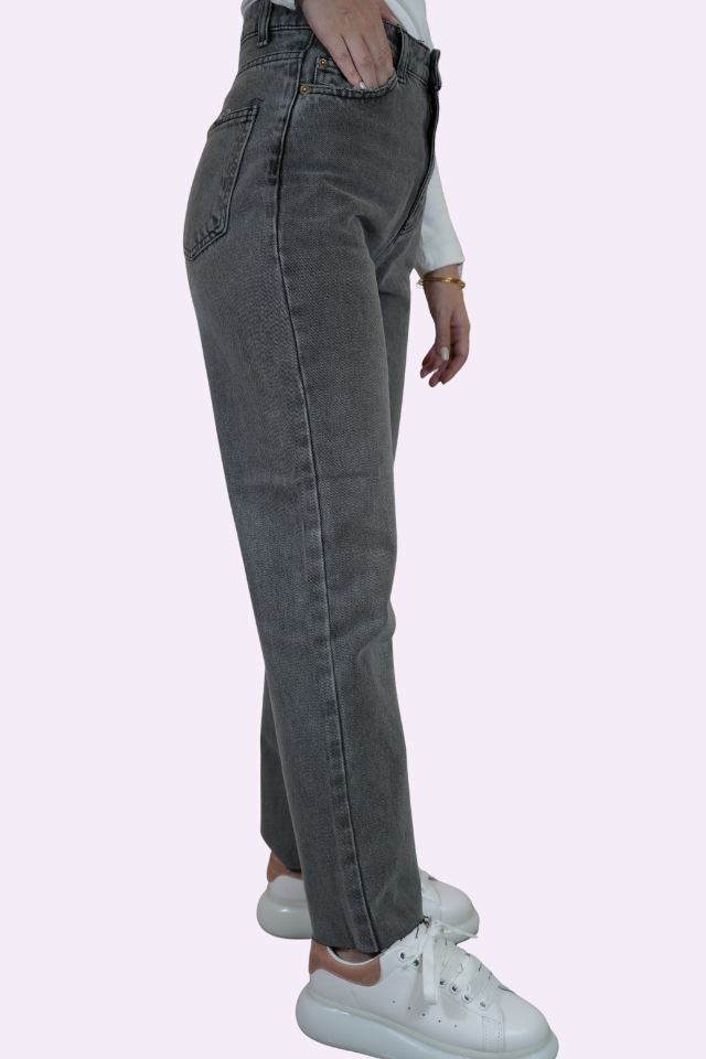 Yüksek Bel Füme (Koyu Gri) Jean Pantolon