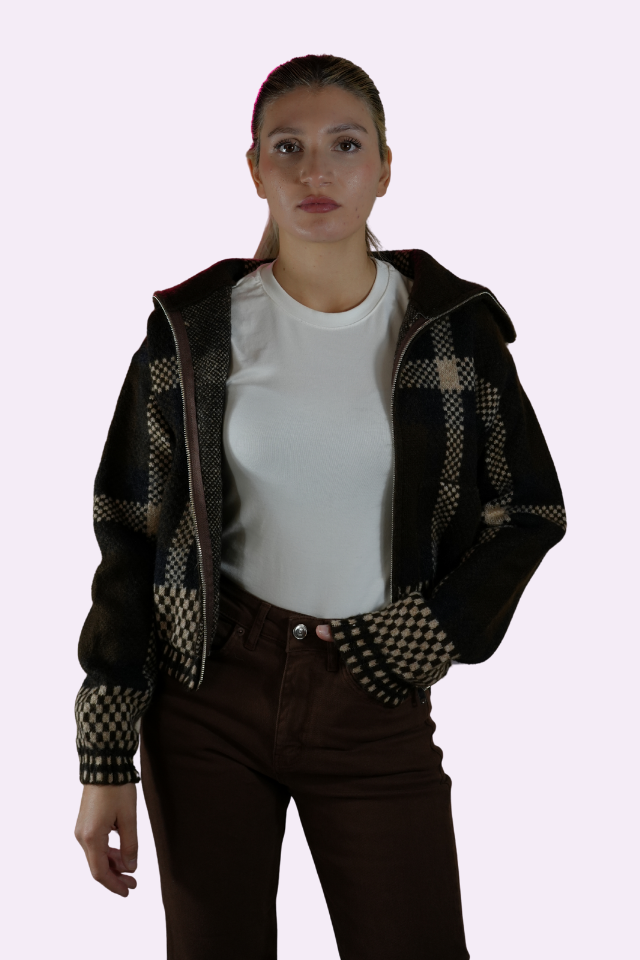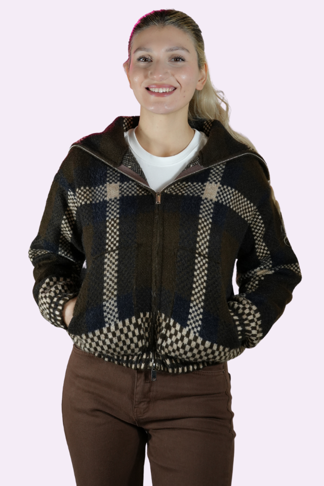 Soğuk havaların en konforlu çözümü! Farklı kare ve geometrik desenlerin uyumuyla tasarlanan bu kalın örgülü ceket, sizi sıcak tutarken stilinizden ödün vermez. Yüksek yaka detayı rüzgardan korur, fermuarlı yapısı ise kullanım kolaylığı sağlar. Özellikle sonbahar ve kış kombinlerinizin vazgeçilmezi olacak bu parçayı, Jean veya kumaş pantolonlarla kolayca tamamlayabilirsiniz.
